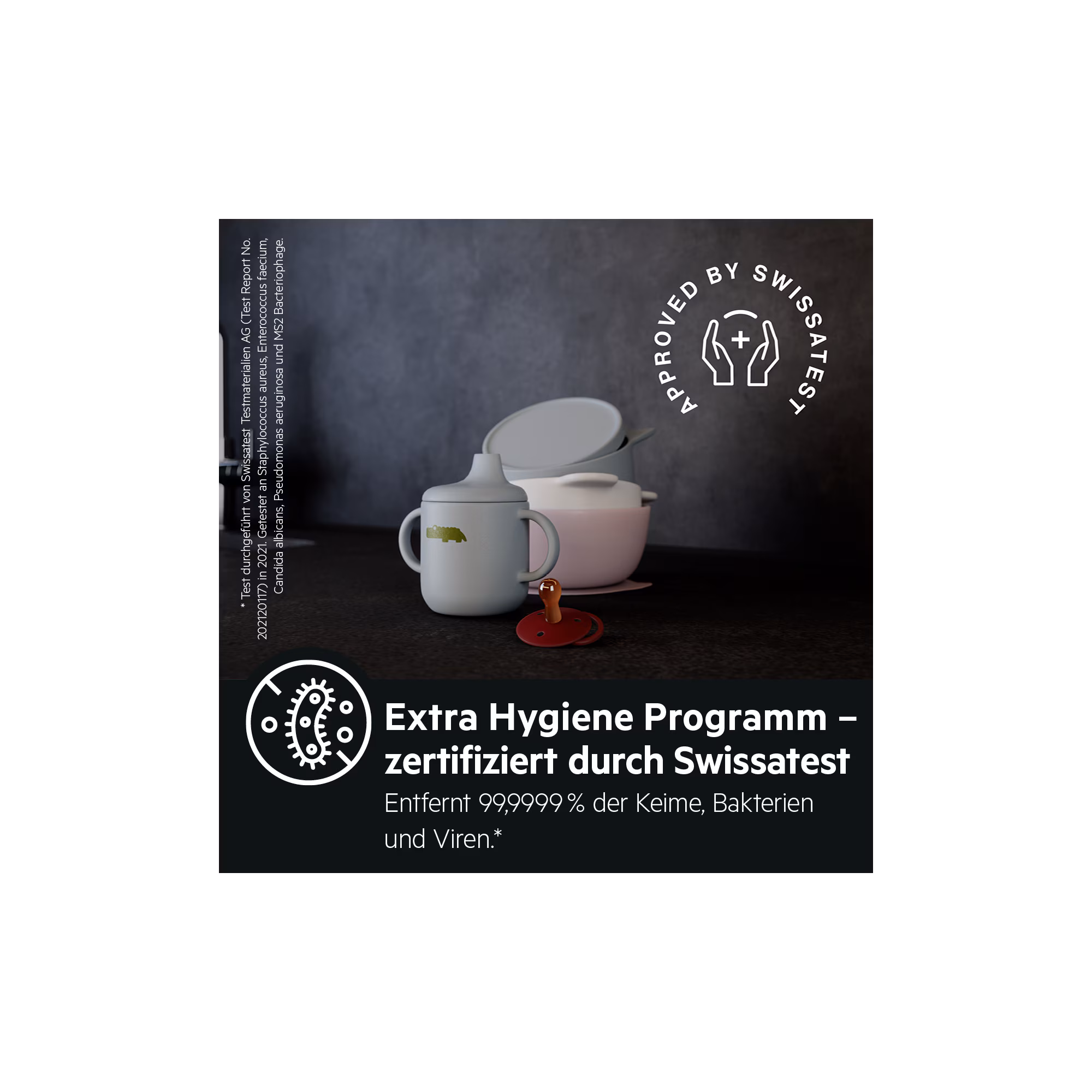 - Program ExtraHygiene: Higieniczne czyszczenie w temperaturze 69°C, aby usunąć bakterie i zarazki.