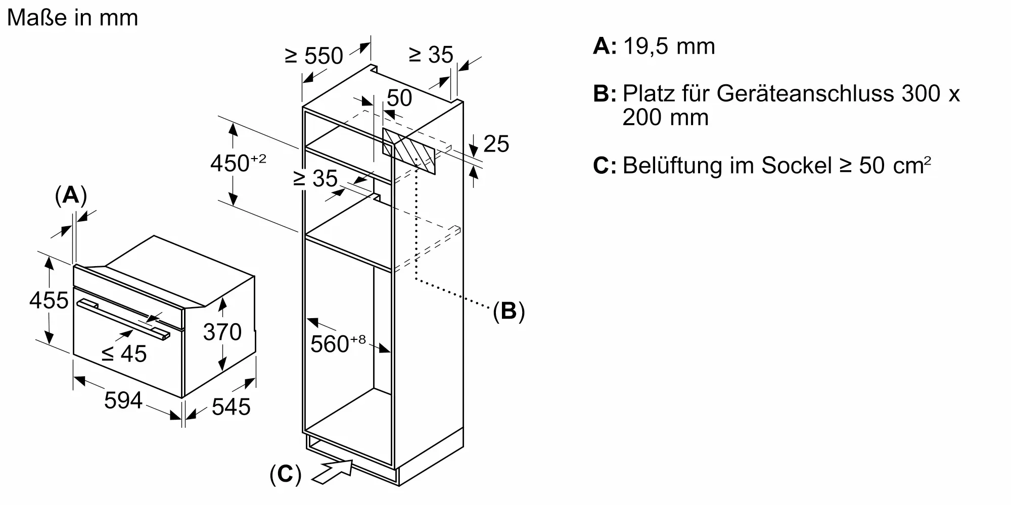 · Nischenmaße (HxBxT): 450 mm x 560 mm x 550 mm