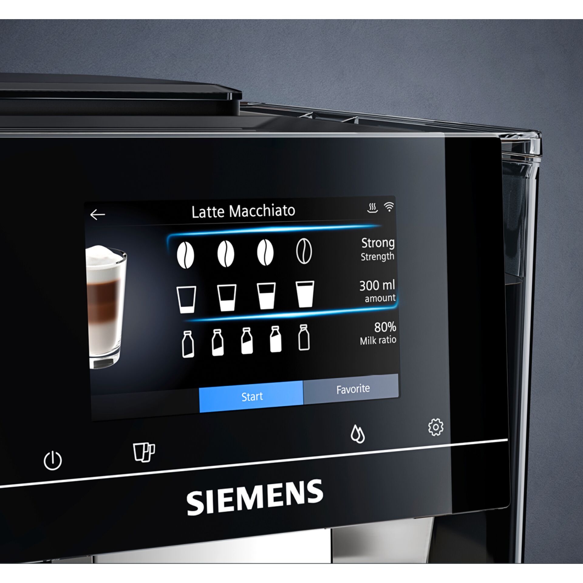 - Bis zu 36 Heiß- und Kaltgetränke (inkl. Milch, Milchschaum und Heißwasser) im Gerät und in der Home Connect App.