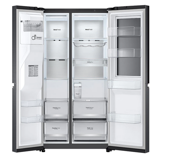 Ciesz się wyjątkową wydajnością chłodzenia i stylowym designem dzięki lodówce LG GSXV91MCAE Side-by-Side.