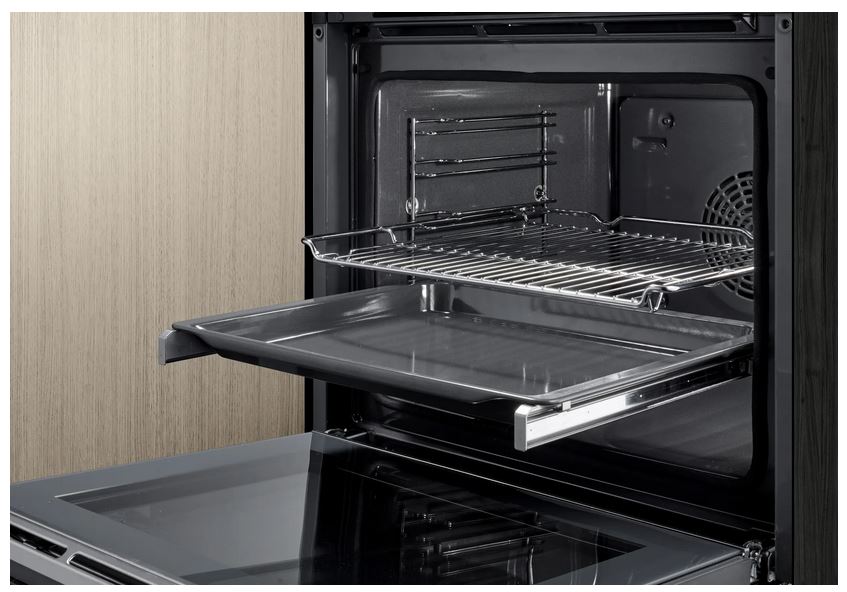 Siemens HZ538000 clip-out to teleskopowy uchwyt, który można szybko i łatwo zamontować na każdym poziomie piekarnika, w tym na poziomie grillowym. System umożliwia bezpieczne wyciąganie blach do pieczenia, nawet w przypadku ciężkich lub dużych przedmiotów. Idealny do zwiększenia elastyczności i łatwej obsługi. Wykonany ze stali nierdzewnej, pasuje do piekarników 60 cm oraz piekarników kompaktowych (45 cm). Nie nadaje się do używania w piekarnikach mikrofalowych ani do gotowania na parze.