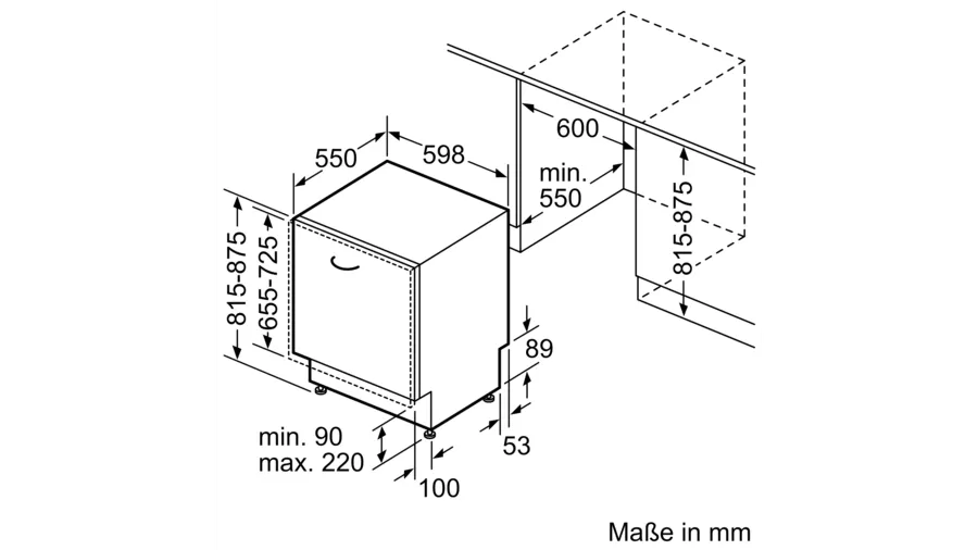 - Głębokość przy otwartych drzwiach (90°): 1150 mm