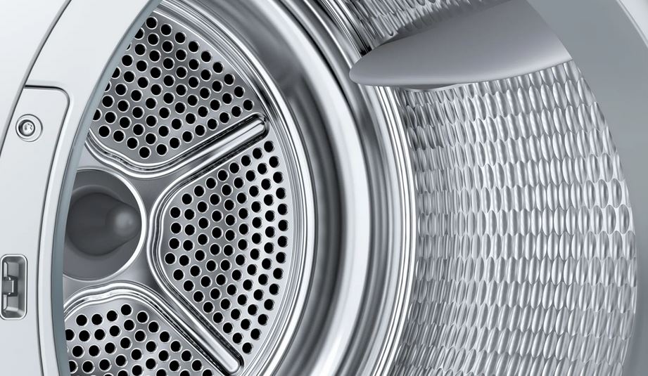 • softDry-Trommelsystem: große Edelstahltrommel, Mitnehmer im