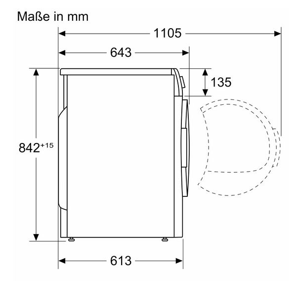 • Gerätetiefe mit geöffneter Türe: 110.5 cm