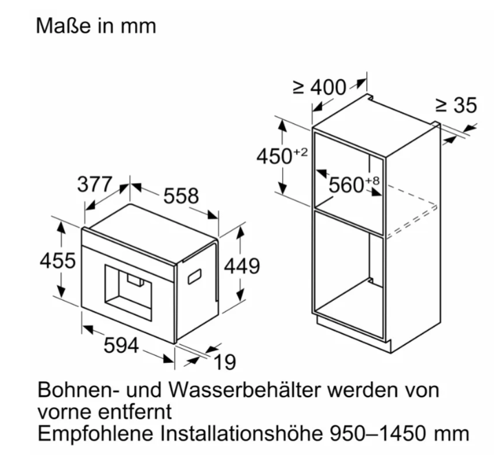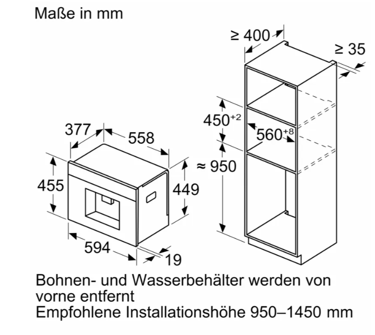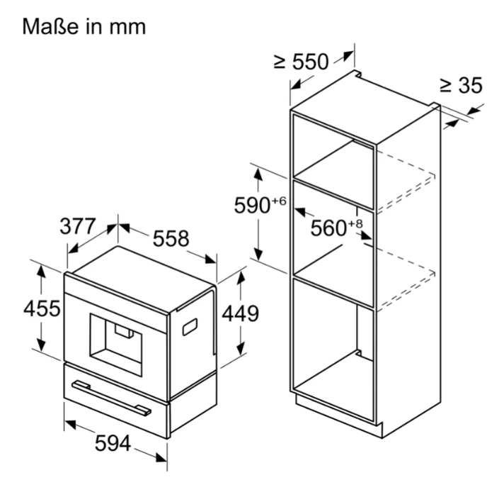 - Wymiary wnęki (wys.×szer.×gł.): 449 × 558 × 376 mm