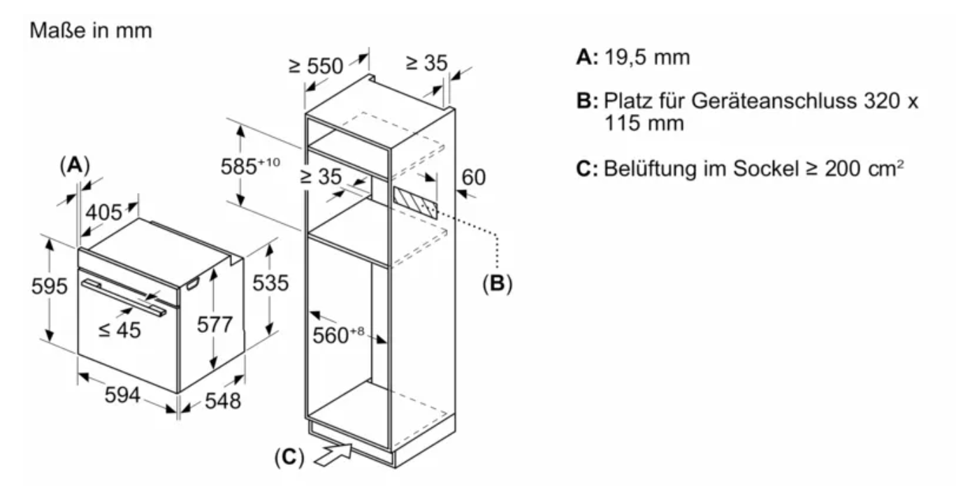 Abmessungen des Gerätes: …595x594x548 mm