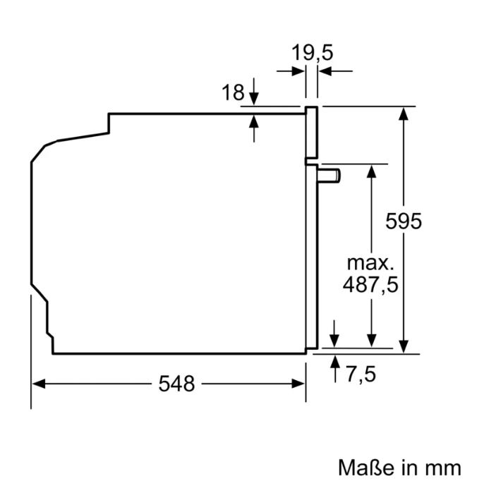 iQ700, Einbau-Backofen mit Mikrowellenfunktion, 60 x 60 cm, Schwarz HM778GMB1 Backofentyp und Heizart • Elektronische Temperaturregelung von 30 °C - 300 °C • Garraumvolumen: 67 l Zubehörträger / Auszugssystem: • Einschubebenen: 5 Stck • 1fach-Teleskop-Auszug, pyrolysefähig Design • touchControl-Bedienung • Email anthrazit Reinigung • activeClean® - Selbstreinigungs-Automatik • Hydrolyse-Programm Komfort • EasyClock • > • Klapptür, Backofentür mit softClose, Öffnen gedämpft • Speisenkategorien • Schnellaufheizung • coolStart • LED-Innenbeleuchtung, Backofenbeleuchtung abschaltbar • Kühlgebläse Zubehör • 1 x Backblech emailliert, 1 x Kombirost, 1 x Universalpfanne Umwelt und Sicherheit • Sehr geringe Fenstertemperatur max. 30°C • (Messung bei 180°C Backofentemperatur / Heizart Ober-/Unterhitze nach 1 Stunde in der Fenstermitte) • Kindersicherung • Türverriegelung bei Pyrolysebetrieb Sicherheitsabschaltung Restwärmeanzeige Starttaste Türkontaktschalter Technische Info: • Länge Netzkabel: 120 cm • Nennspannung: 220 - 240 V • Gesamtanschlusswert Elektro: 3.6 kW Maße • Gerätemaße (HxBxT): 595 x 594 x 548mm • Nischenmaße (HxBxT): 595 mm x 560 mm x 550 mm • „Maße und Einbauhinweise zu diesem Gerät gemäß technischer Zeichnung beachten“