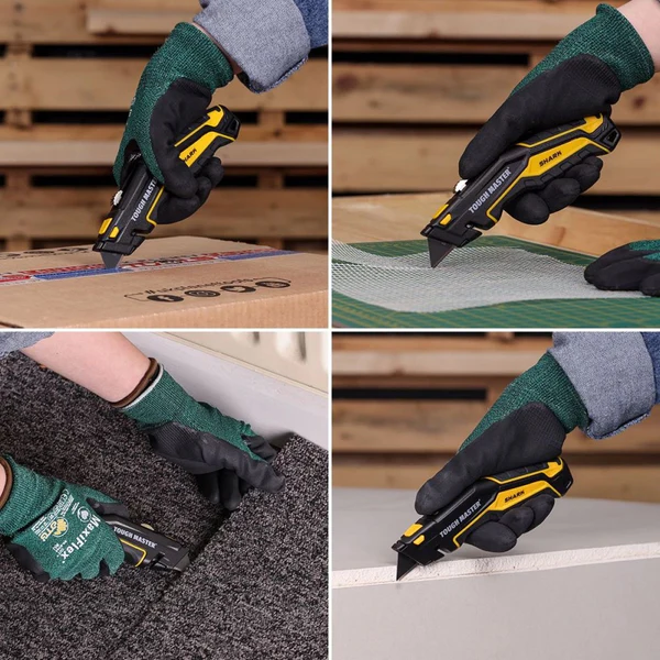 Tough Master UTK184 to solidny i wszechstronny nóż użytkowy do codziennego użytku. Posiada ergonomiczną rękojeść zapewniającą wygodną obsługę i bezpieczne użytkowanie. Nóż wyposażony jest w system szybkiej wymiany ostrzy, dzięki czemu ich wymiana jest łatwa i szybka. W zestawie znajduje się dziesięć dodatkowych ostrzy wykonanych z wysokiej jakości wytrzymałego materiału. Nóż Tough Master UTK184 jest niezawodnym narzędziem dla majsterkowiczów i profesjonalistów i nadaje się do różnych zastosowań, takich jak cięcie papieru, kartonu, dywanów, tworzyw sztucznych i innych.